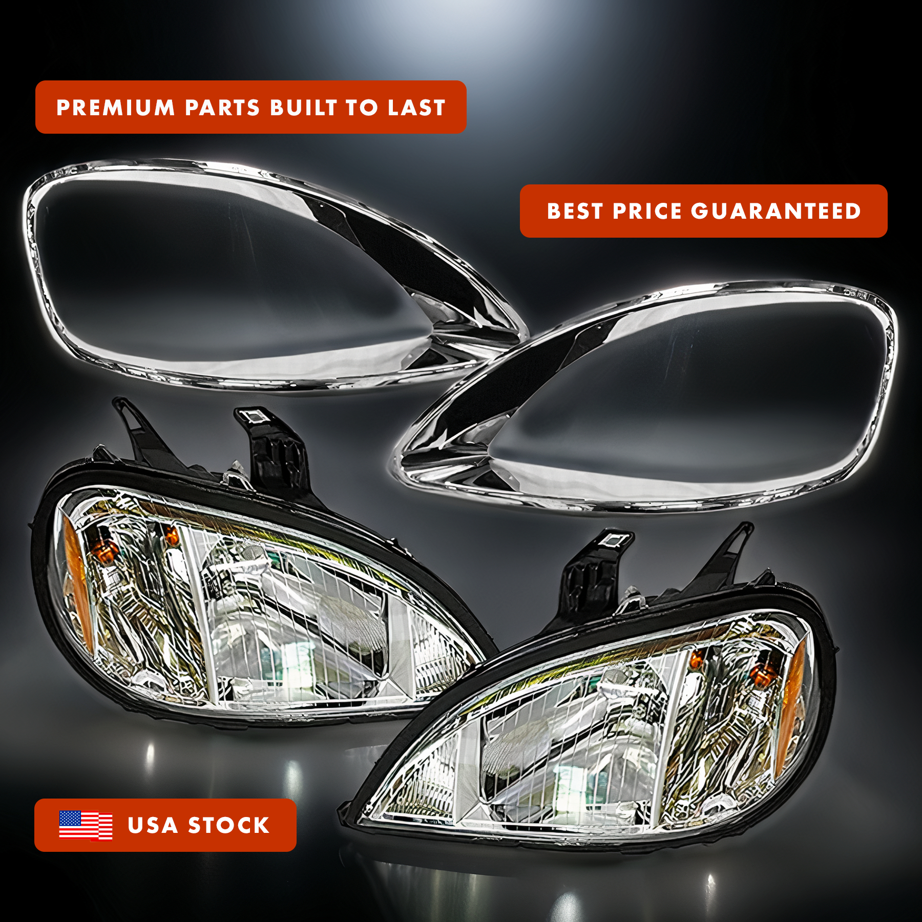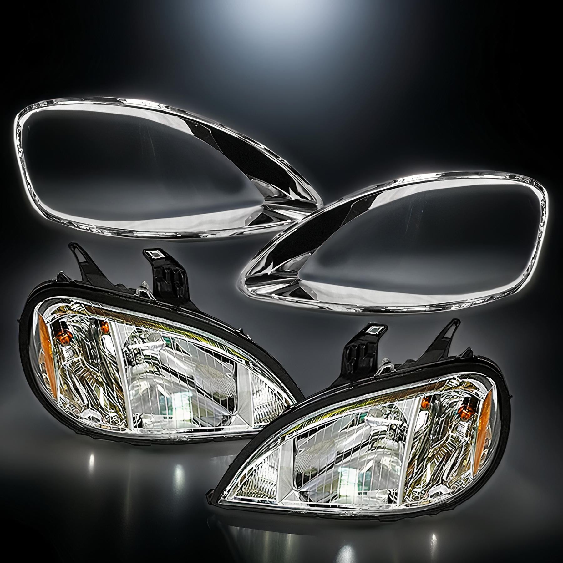 Headlights Halogen Set with Chrome Bezel 2004+ Freightliner Columbia