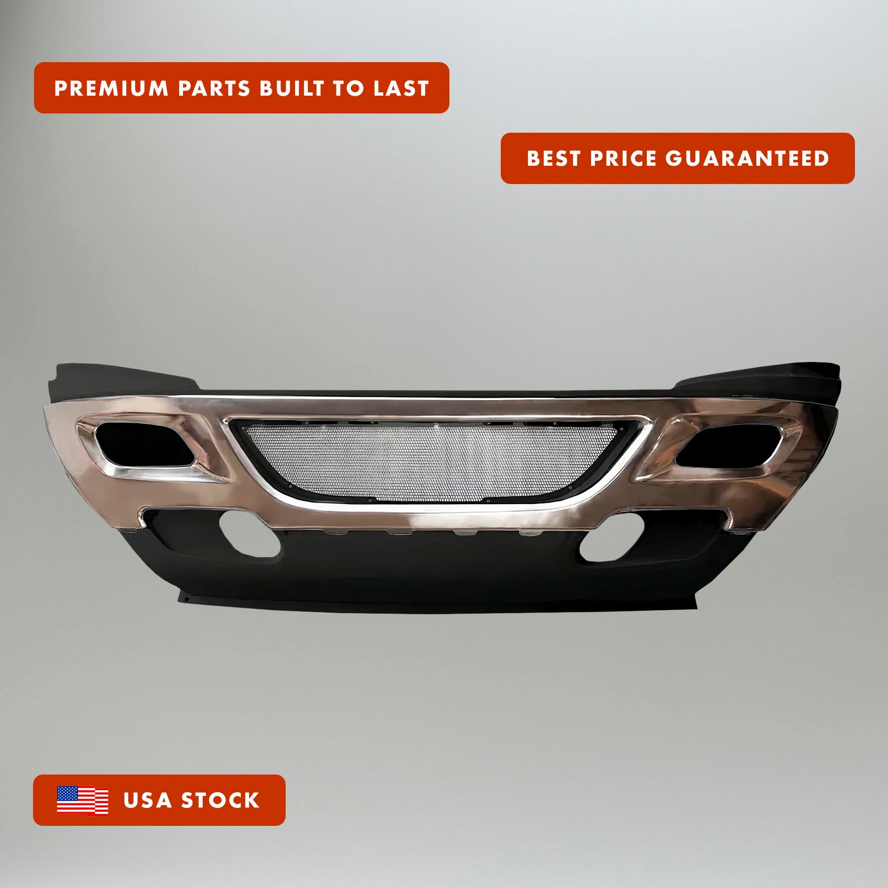 PLASTIC Center Bumper Cover with Stainless Steel Trim and Grille Screen