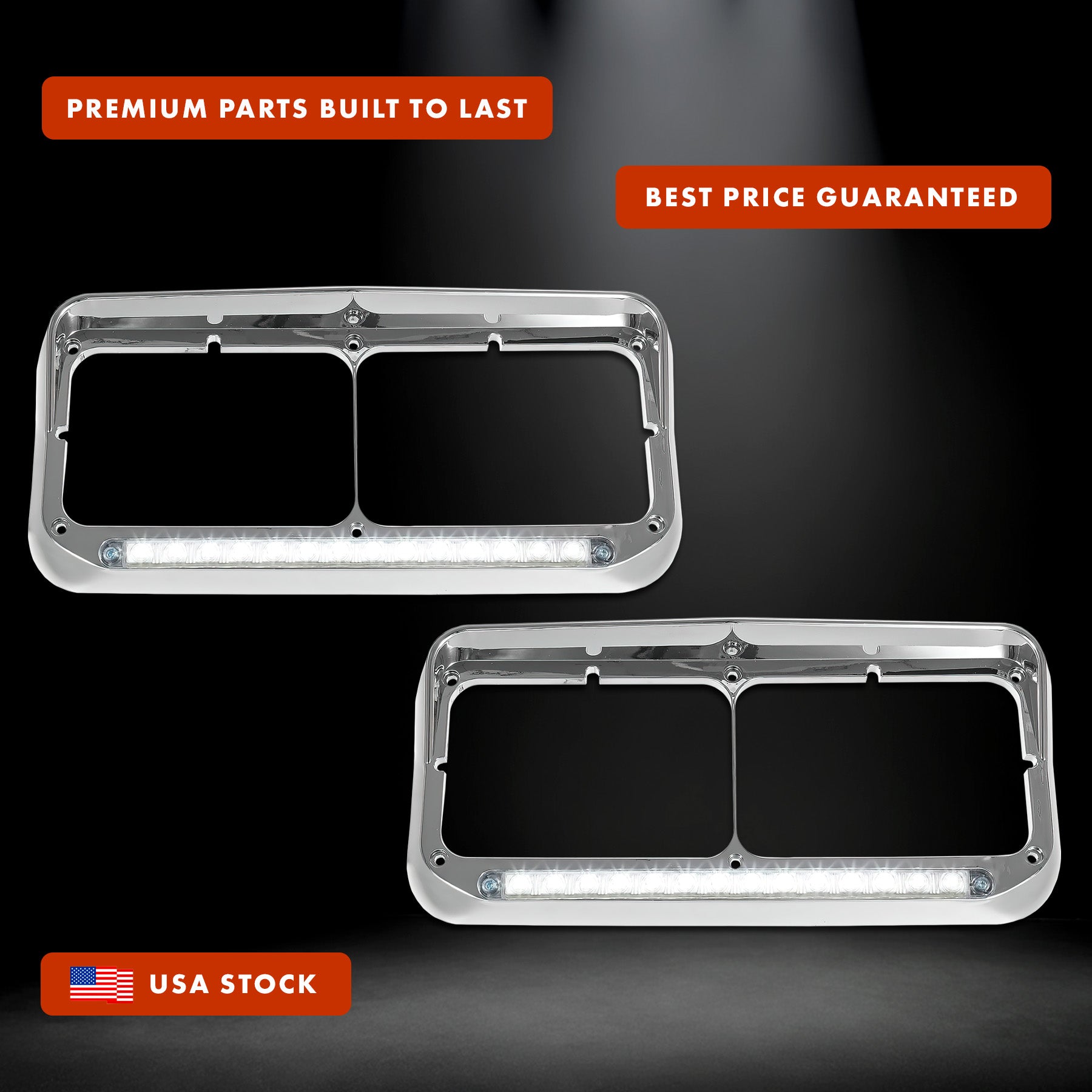 - Package includes - 1 pair of headlight bezel (Passenger Right & Left Driver Side). White LED with Clear Lens.