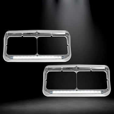 Headlights Bezels Chrome with 12" Clear/White LED Light Strip Bar 2 Pcs.