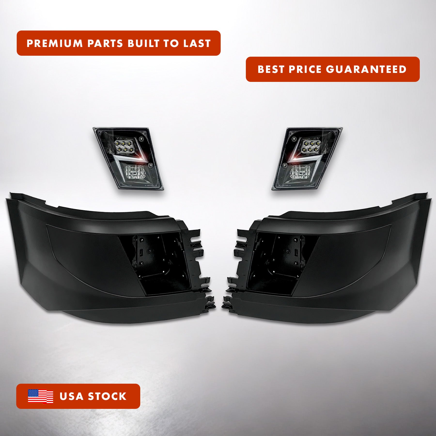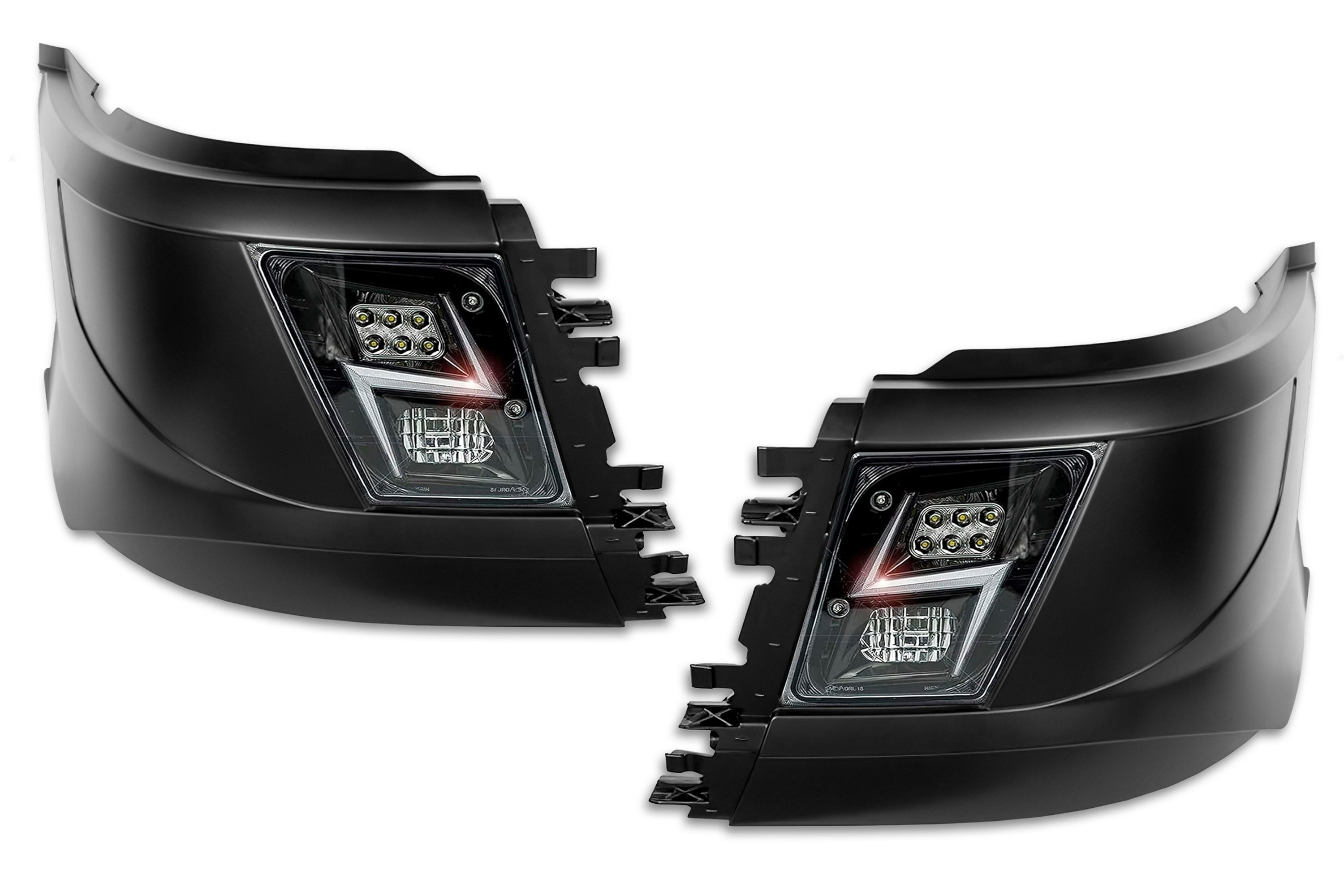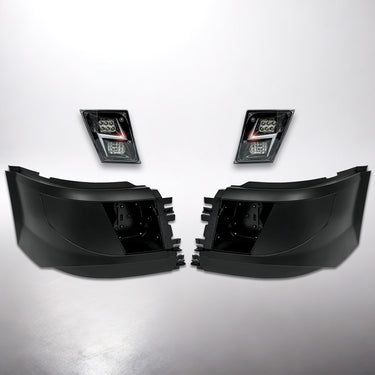 Bumper Corners w/ Fog Holes & LED Fog Lights Black Housing Set 2016-2017 Volvo VNL