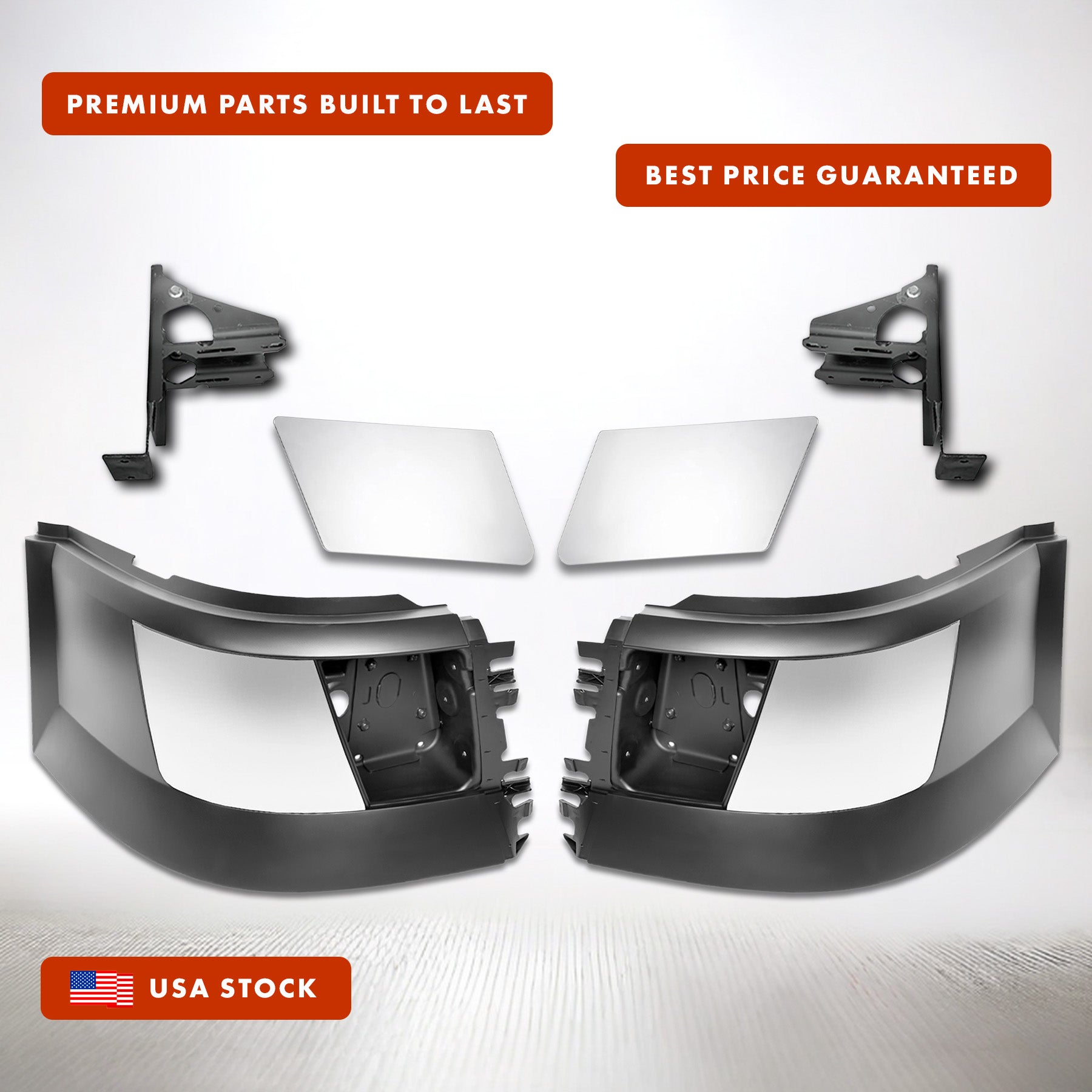 Home Bumper Corners w/ Fog Holes w/Chrome Trims & Brackets Set 2004-2015 Volvo VNL