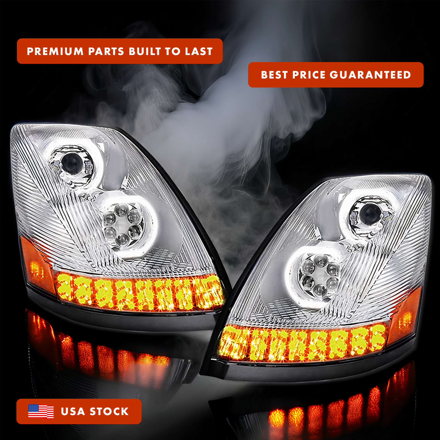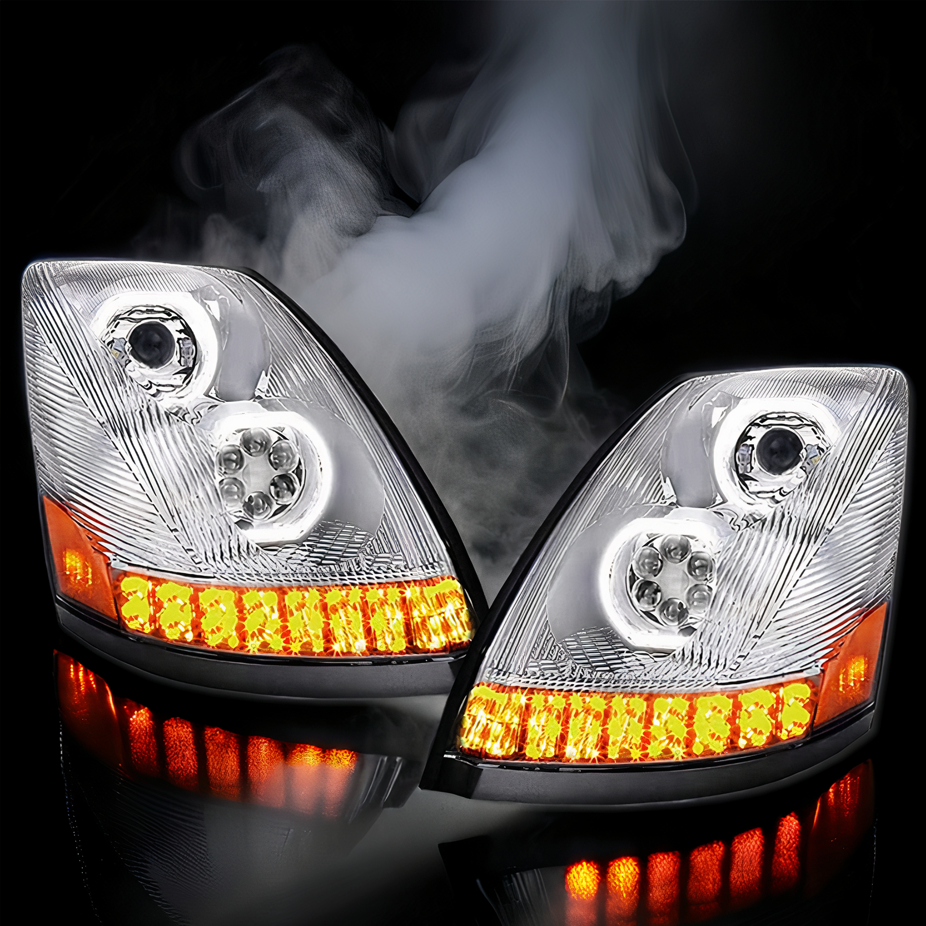 Full LED Performance Headlight Pair with Sequential Turn Signals Chrome Housing