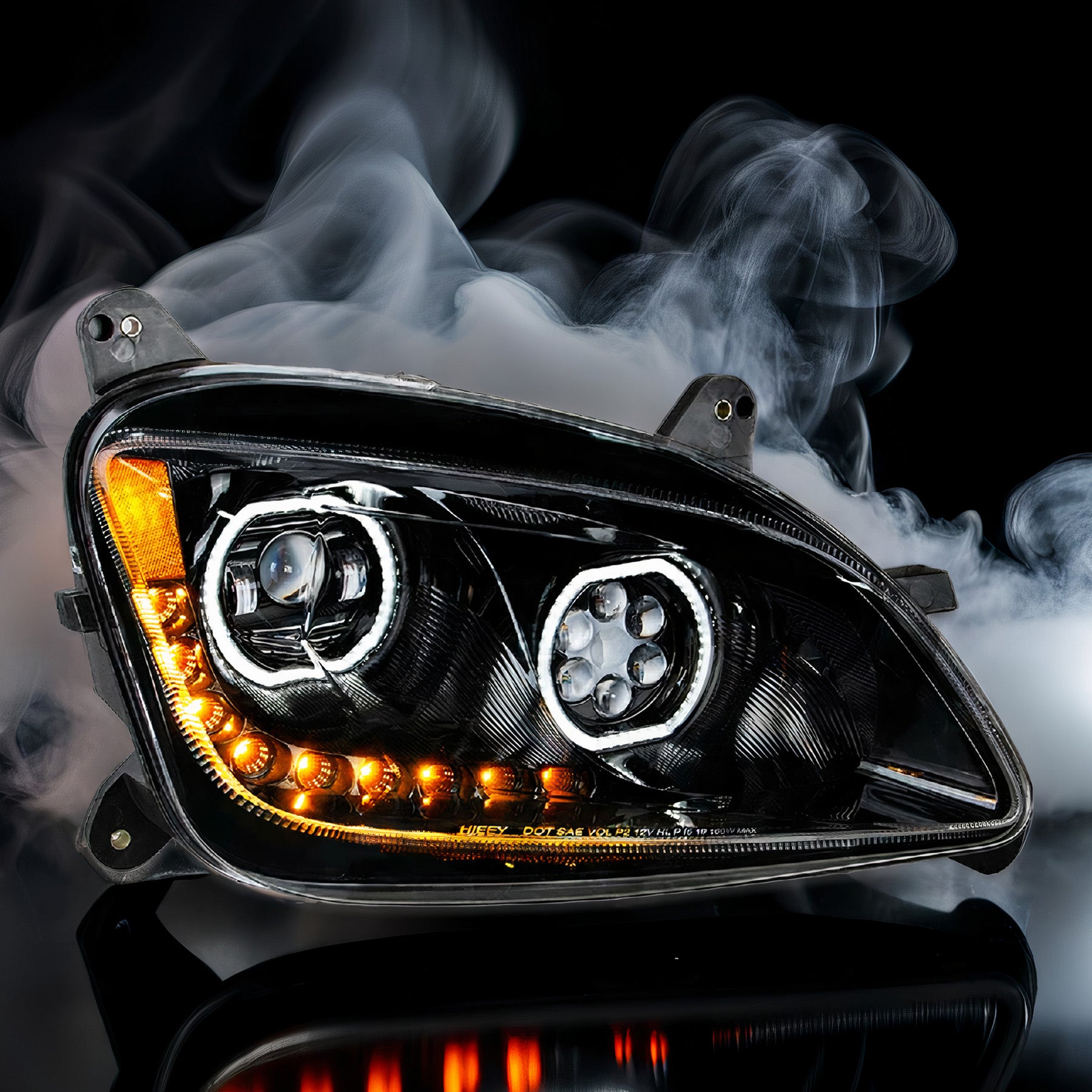 - Amber LED Front Sequential Indicator Low Beam:2400 Raw Lumens, 42W LED High Beam: 1600 Raw Lumens, 6 LED x 5W LEDs