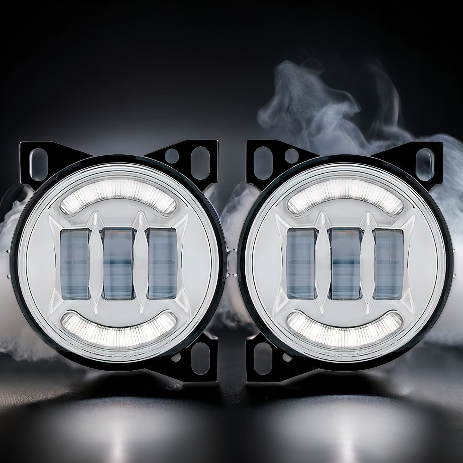 Full LED Fog Lights Lamp w/LED Arches High Power Pair Set