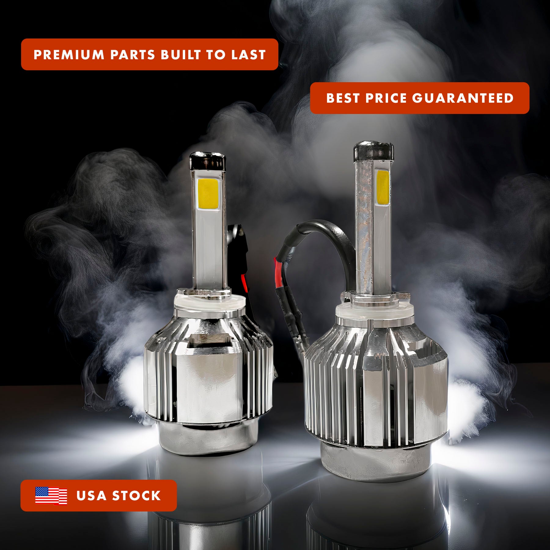 - Uses LEDs for a pure white color with no yellow tint like standard halogen bulbs