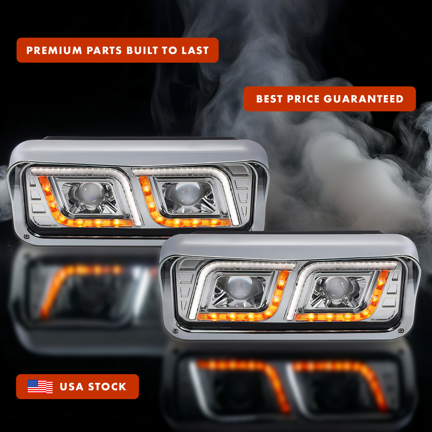 Home Headlights LED Chrome Set Peterbilt 357 365 378 379