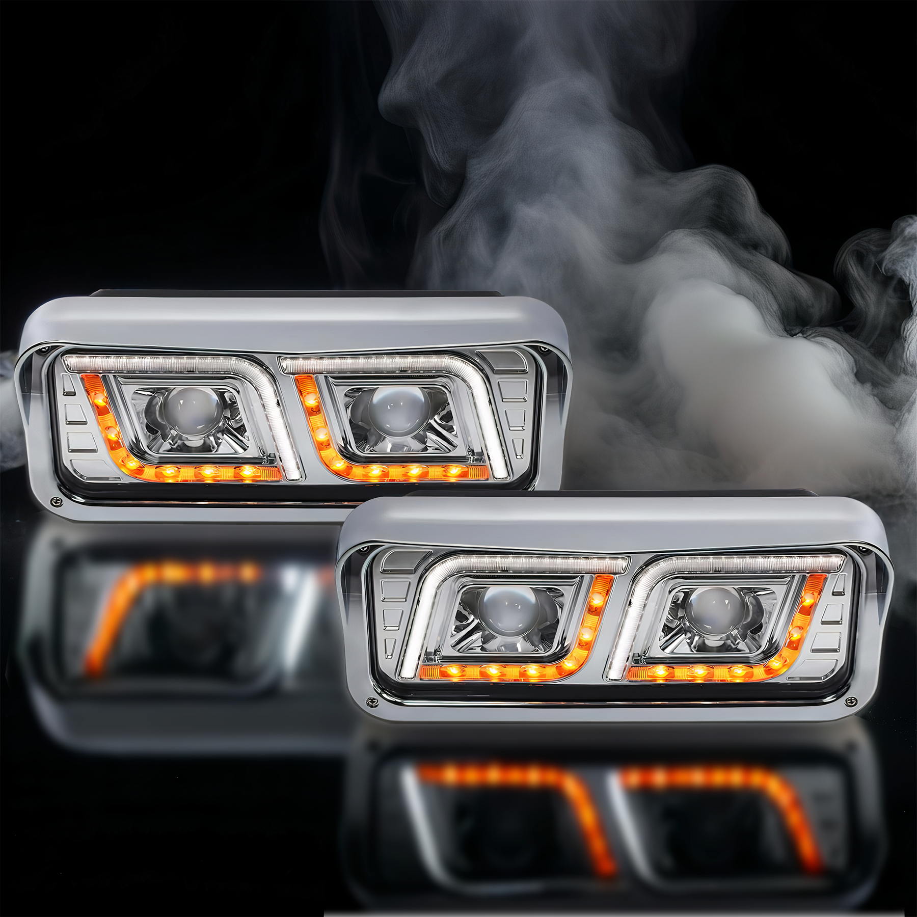 Headlights LED Chrome Set Peterbilt 357 365 378 379