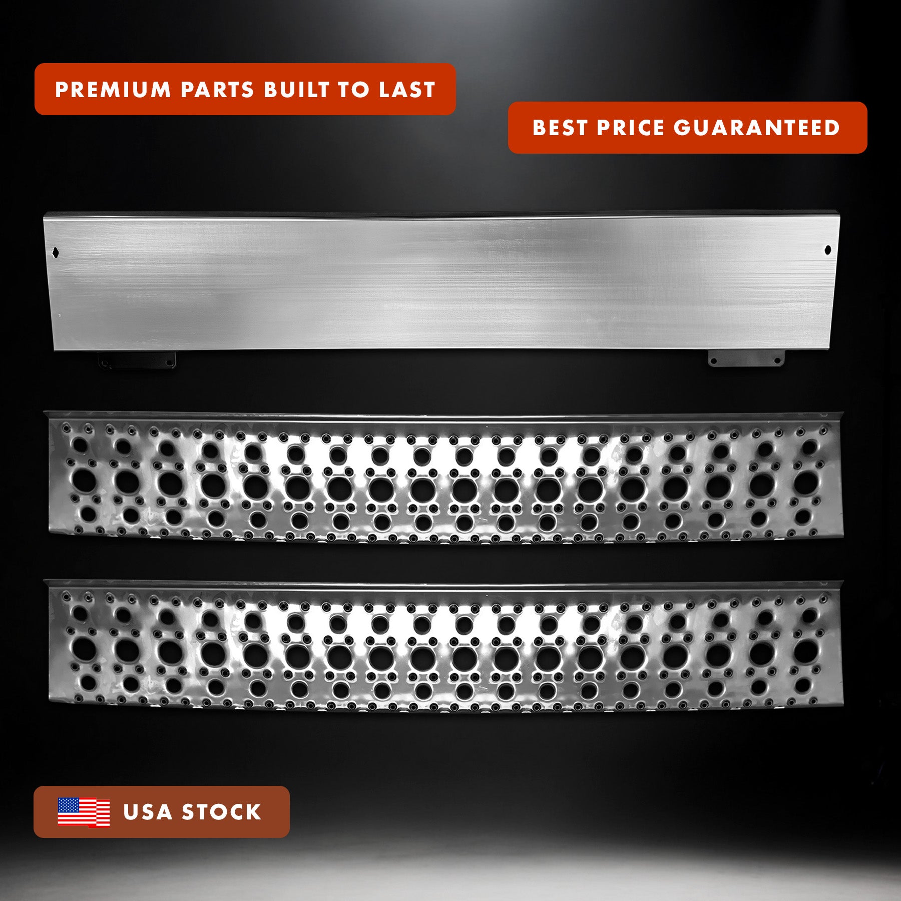 - Complete Passenger Side Kit: Includes two 37.5" aluminum fairing steps and a matching front side step skirt for the right (passenger) side